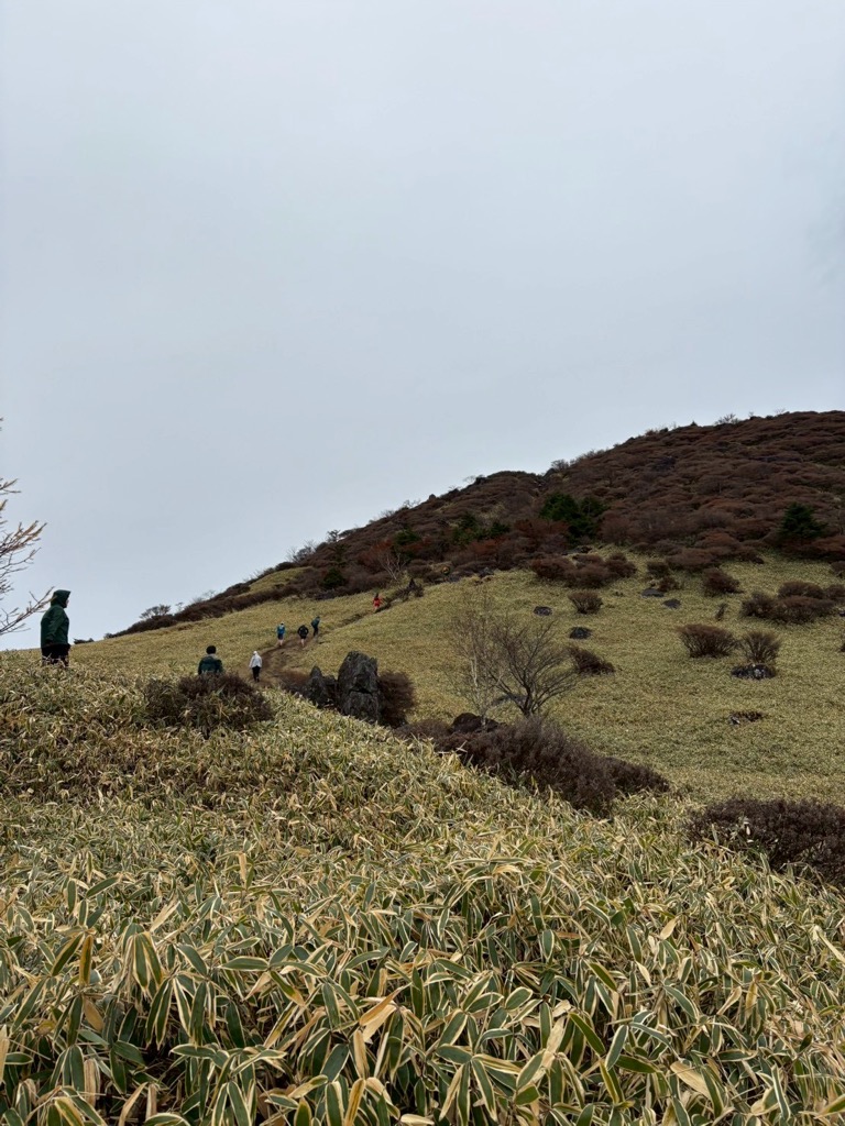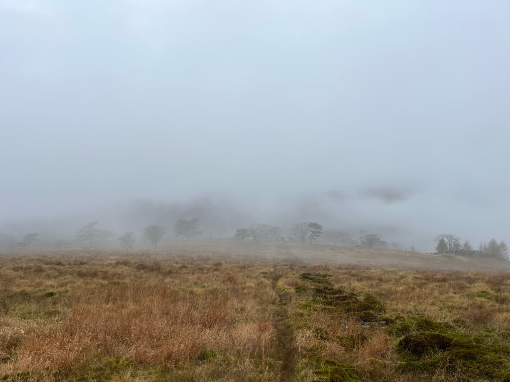 登りきり、尾根道に出た途端に強風が…!!寒い…!!