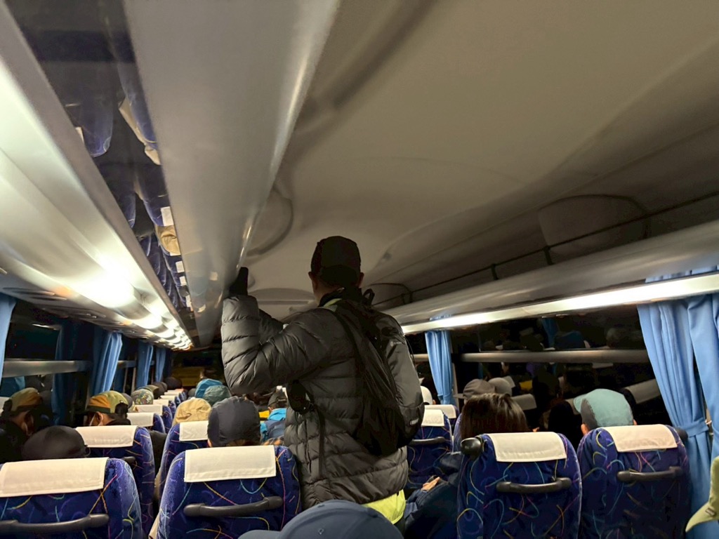 その後、関門アウト組は回収バスに乗ってスタート地点へ戻る事に。