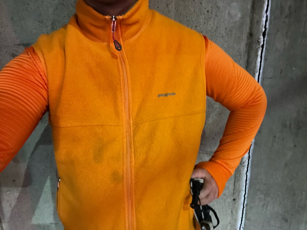 一枚では流石に寒いのでフリースベストやウィンドシェルを着用。
